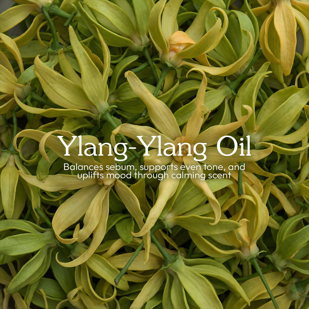 Balances sebum, supports even tone, and uplifts mood through calming scent.
